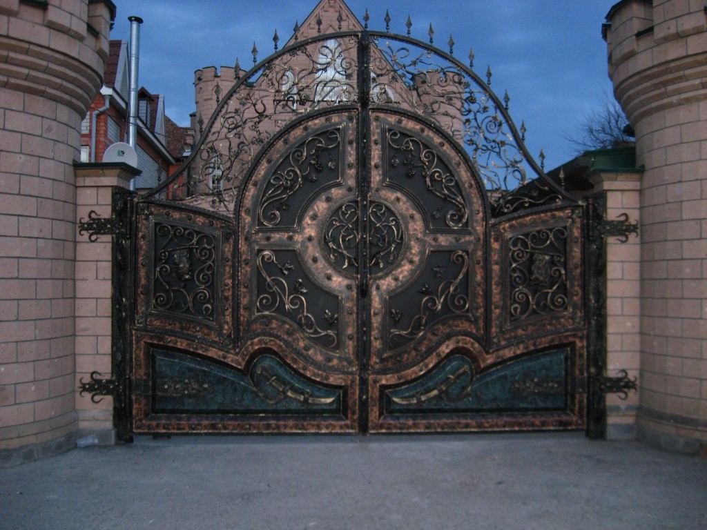 Металлические распашные ворота (либо украшенные элементами ковки) - это классикой жанра, открываются наружу и вовнутрь и имеют возможность автоматизации.  Качественно и стильно изготовленные ворота, имеющий неповторимый дизайн, не толькосвоеобразная визитная карточка дома, но и один из уровней защиты Ваших близких.